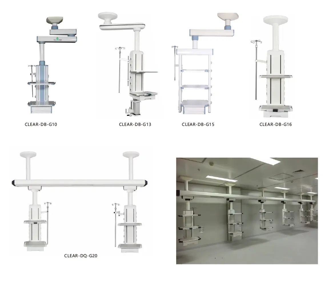 Підвісна підвіска з суспензії на башту з медичною рукою Weclearmed DB може задовольнити різні потреби, прозорий DB-GD10 подвійний підвіс, моторизований моторизований рукояткою, одиночний підвісок з одномісною рукою Clear-DB-G13, одиночний (подвійний підвісник з анестезією руки, одиночний (подвійний) кмітливість ендоскопа, Clear-DB-G16 (подвійний) механічний підвіс. Для отримання більш детальної інформації, будь ласка, зв'яжіться з нами!