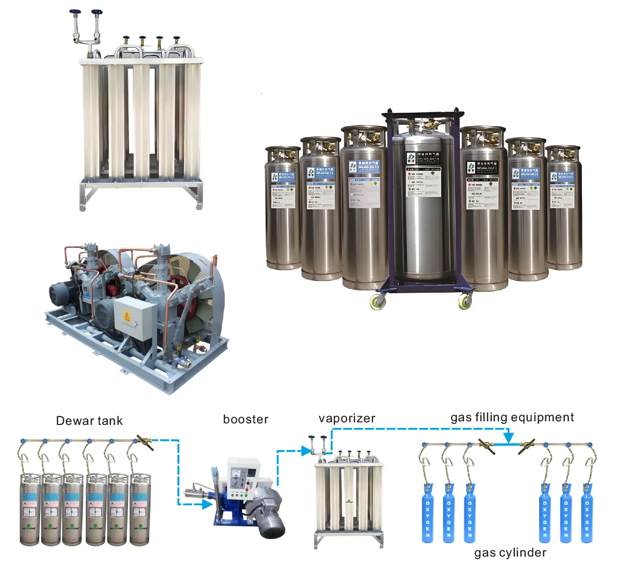 Система медичної рідини кисню використовується для виробництва, зберігання та транспортування низькотемпературних рідин. Він широко застосовується в медичній, промисловому, сільськогосподарському, національному оборонному та науково -дослідному галузі. Порівняно з традиційним сталевим газовим циліндром, він має переваги зручного транспортування, економії енергозберігання, безпеки та надійності.